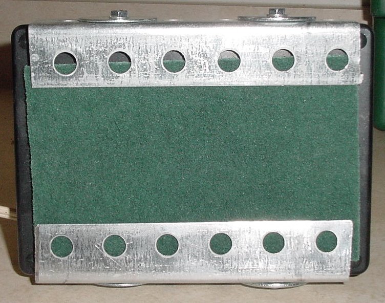 - Mount "L" Brackets to sides of box leaving a space to slide the Scour Pads into so as to cover the rectangle opening cut into the bottom of the box.